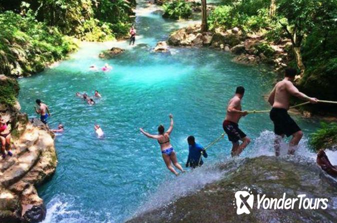 Enjoy the ultimate combination of fun and adventure with both the Dunn's River falls and Blue Hole from Falmouth cruise ship port. Duration of this tour is approximately 6 hours. Activities include hiking waterfalls,cliff jumping,Tarzan rope swing and cave Fun for the entire family
